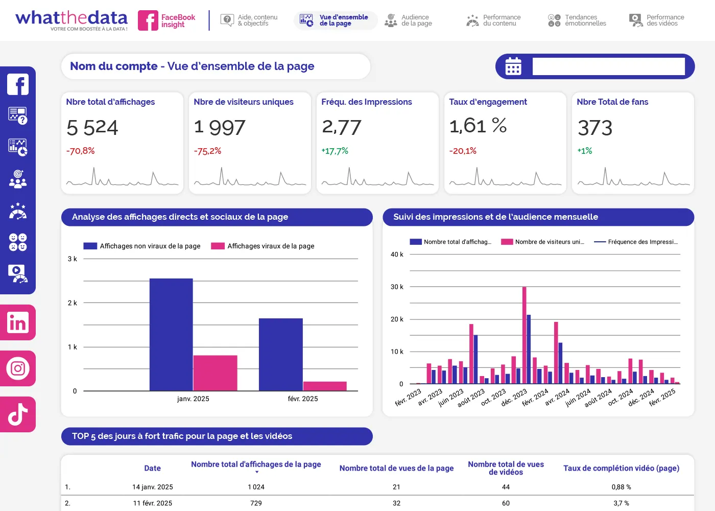 - Métriques LinkedIn + FaceBook + Instagram complètes